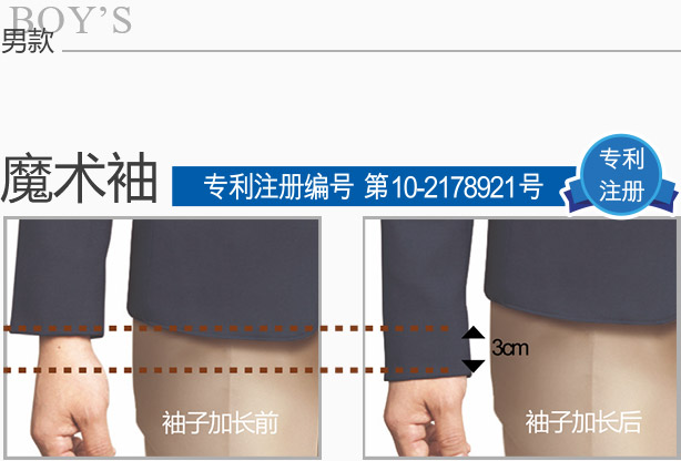 腰部里面设计硅胶防滑带,帮助衬衫定型,展现整齐背部衣型。