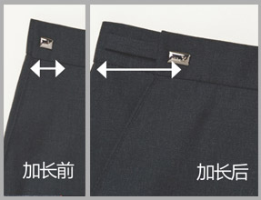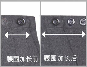 使用腰部两侧的滑动调节器,可自由调节腰部尺寸,采用斜隐形拉链,提高平复度,同时展现时尚感与舒适感。