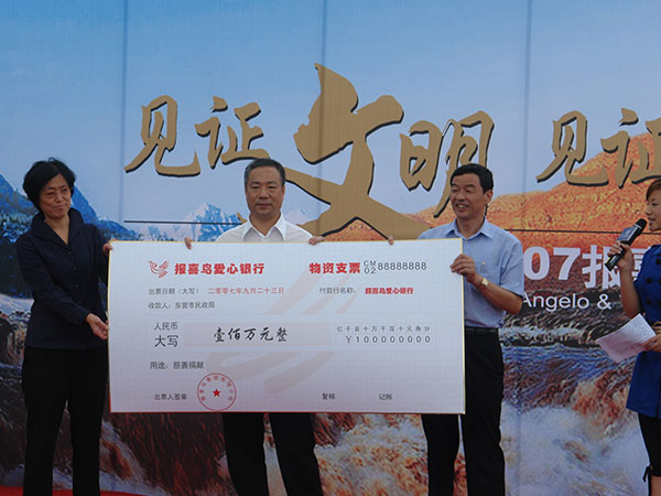 “母亲河”公益活动,全程捐资850万元,并出资120万捐建4所希望小学