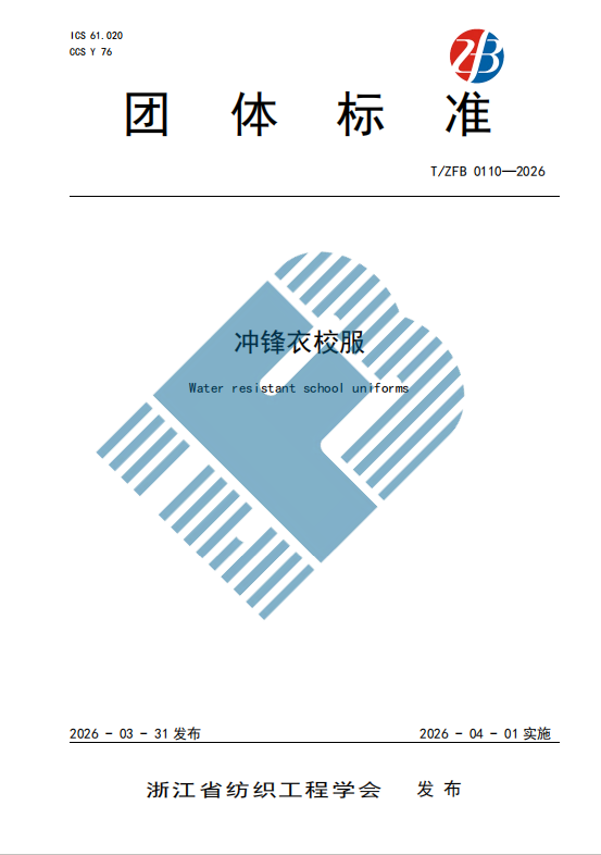 T/ZFB 0110-2026《冲锋衣校服》团体标准