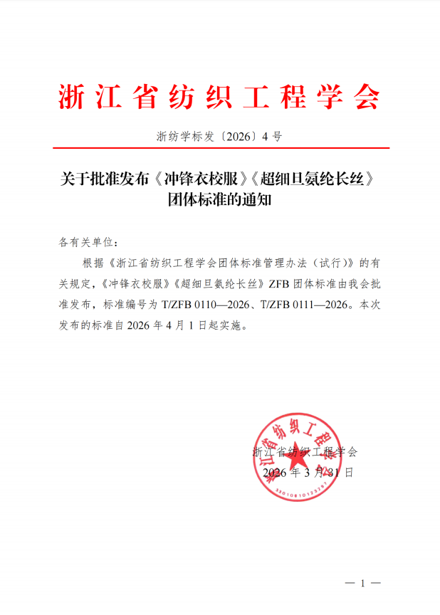 本次标准由浙江省纺织工程学会归口发布